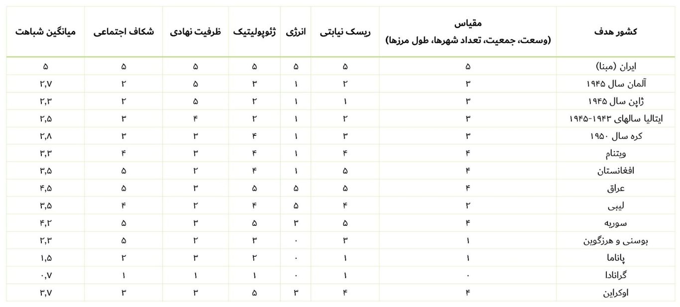 ایران از نظر انسجام ملی و ظرفیت نهادهای حکومتی قویتر از عراق ۲۰۰۳ است، اما از نظر ریسک چندبازیگری منطقهای شباهت قابل توجهی دارد.